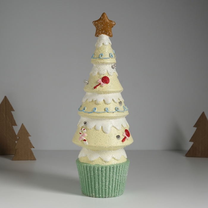 Фигурка светящаяся керамика «Пряничная ёлочка», св. жёлтая, 10×10×31 см