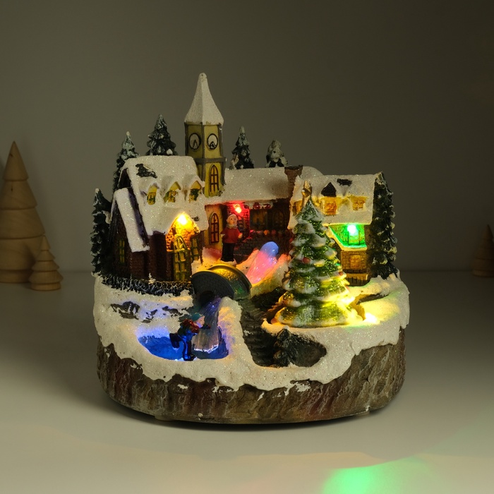 Фигурка светящаяся «Новогодняя улочка», крутящаяся, 20.5×17×20.5 см