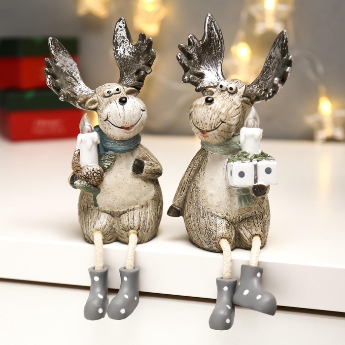 Фигурка светящаяся «Лосик с серебристыми рогами со свечой», 15.5×7×8.7 см, МИКС