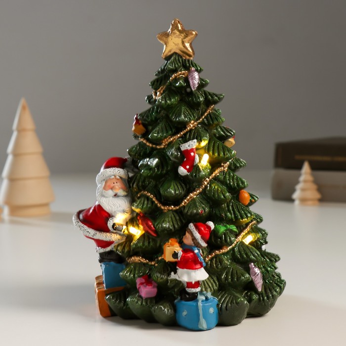 Фигурка светящаяся «Дед Мороз с помощником наряжают ёлочку», 13.5×13×17.5 см