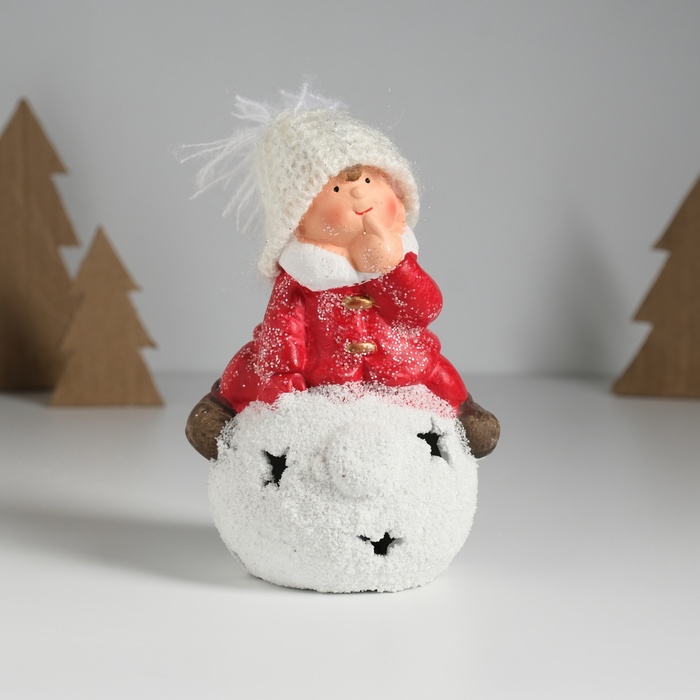 Фигурка светящаяся керамика «Малыш-ангел в красном, на новогоднем шарике», 12.8×8.5×17 см