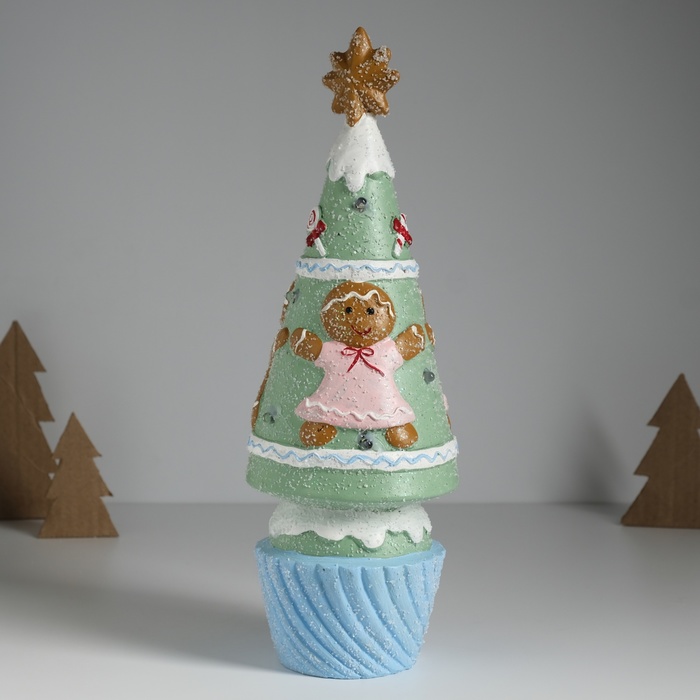 Фигурка светящаяся керамика «Пряничная ёлочка с печенюшками», зелёная, 10×10×31 см