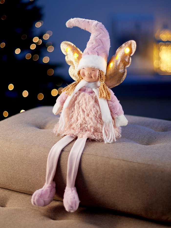 Фигура текстиль «Кукла в розовом» 70 см, 6 LED, от батареек AG10×3, свечение тёплое белое