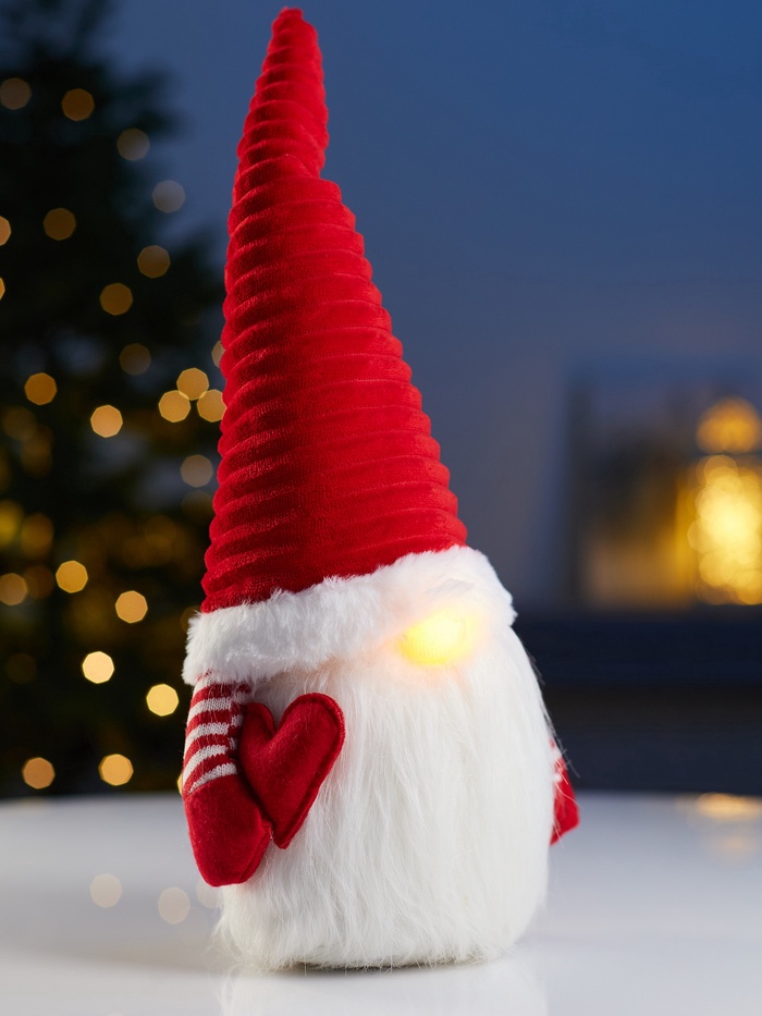 Фигура текстиль «Гном романтик в красном» 40 см, 1 LED, от батареек LR1130×3, свечение тёплое белое