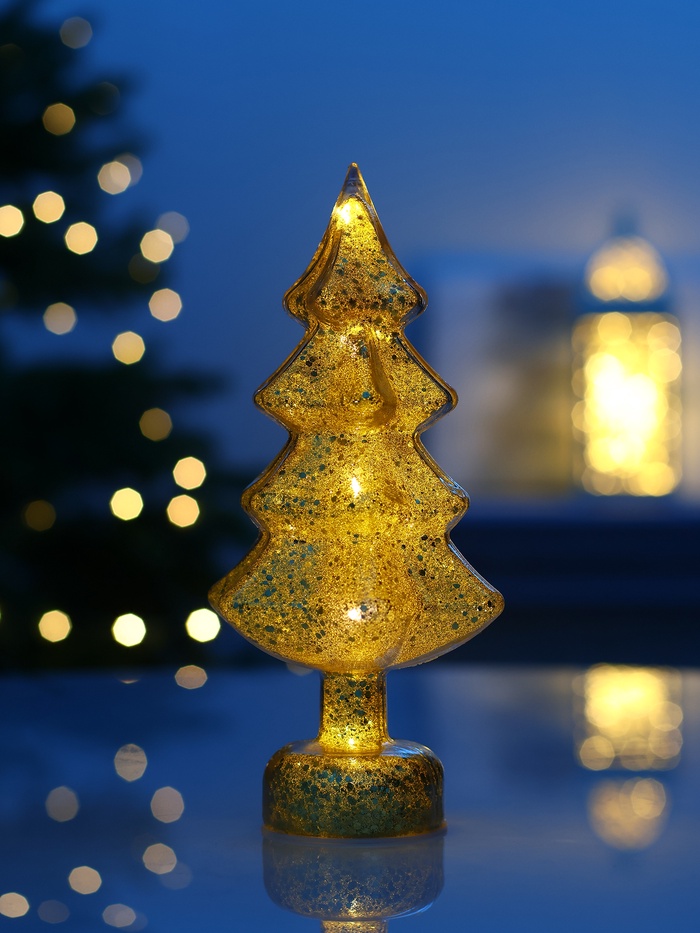 Фигура светодиодная «Ёлочка золотистая», 1 LED, 15×6 см, от батареек AG13x3, свечение тёплое белое