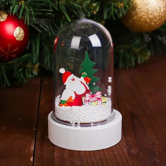 Светодиодная фигура под куполом «Дед Мороз с мешком» 6 × 9.5 × 6 см, дерево, батарейки LR1130х3 (в комплекте), свечение тёплое белое