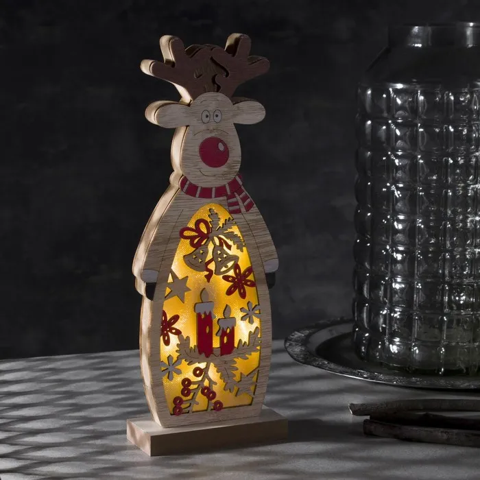 Светодиодная фигура «Олень» 11 × 30 × 5 см, дерево, батарейки АААх2 (не в комплекте), свечение тёплое белое