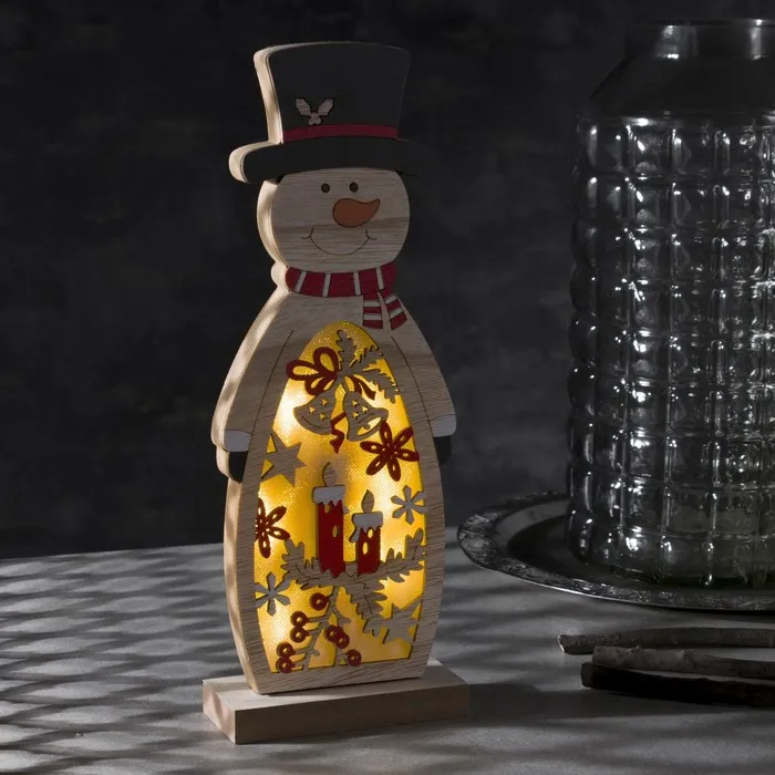 Светодиодная фигура «Снеговик» 16.5 × 20 × 5 см, дерево, батарейки LR1130х3 (в комплекте), свечение тёплое белое
