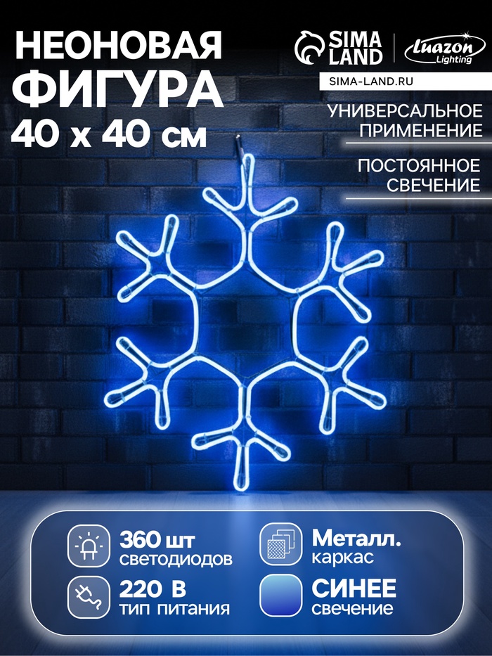 Неоновая фигура «Снежинка», 40 см, 360 LED, 220 В, свечение синее