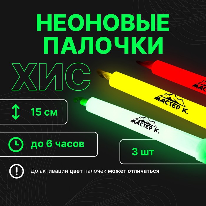 Неоновые светящиеся палочки, набор 3 шт., зеленый, желтый, оранжевый, 15 см