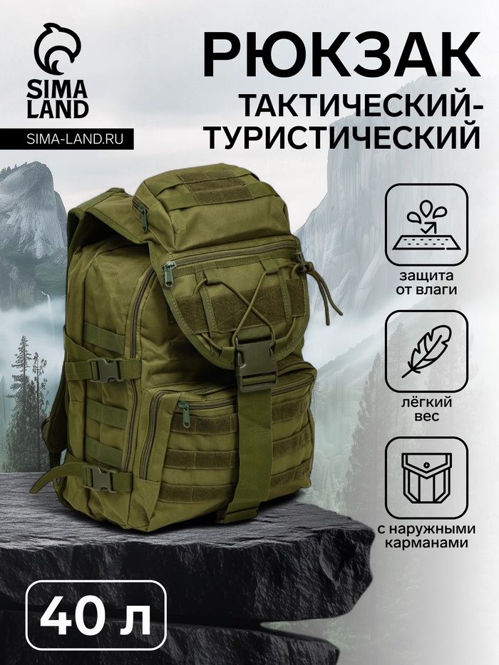 Рюкзак тактический туристический Storm tactic, 40 л, с карманами, однотонный, оливковый