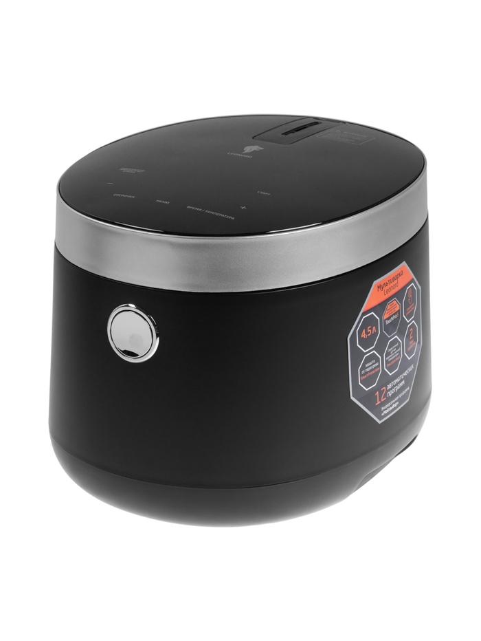 Мультиварка Leonord LE-1761E, 860 Вт, 4.5 л, 12 программ, LED дисплей, сенсорная панель, чёрная