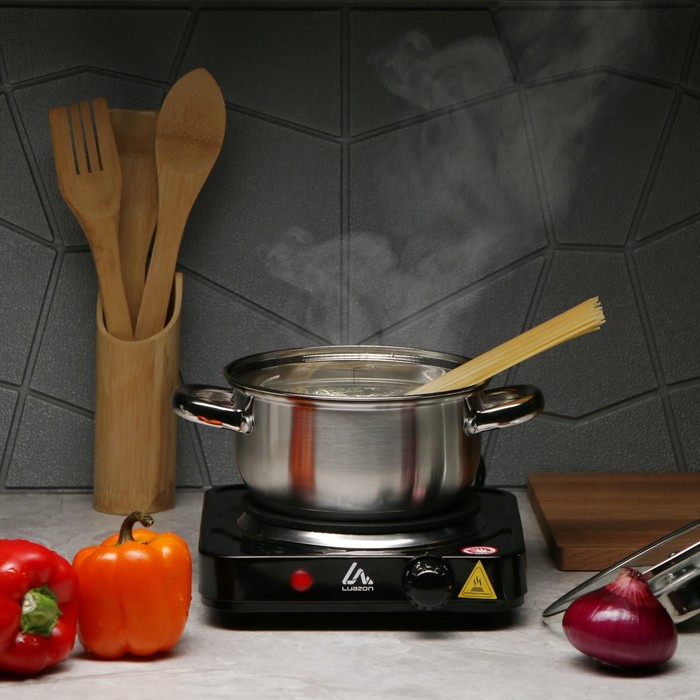 Плитка электрическая Luazon LHP-002, 1 конфорка, 1000 Вт, нагреватель диск, чёрная