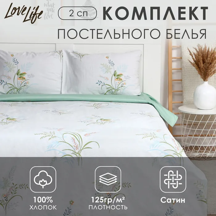 Постельное бельё LoveLife 2сп "Wildflowers" 175х215см, 200х225см, 50х70см-2шт, 100% хлопок, сатин, 125г/м