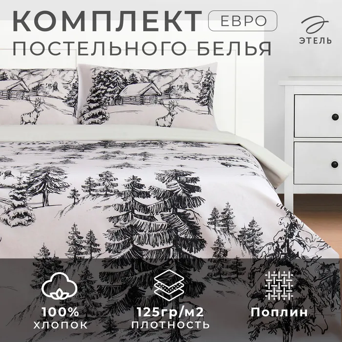 Постельное бельё «"Этель"» евро Winter landscape 200х217 см,220х240 см,50х70 см -2 шт, поплин