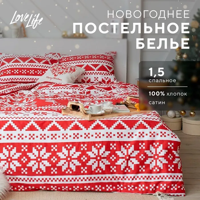 Постельное белье новогоднее LoveLife 1,5сп Christmas ornament 143*215см,150*225см,50*70см-2штуки