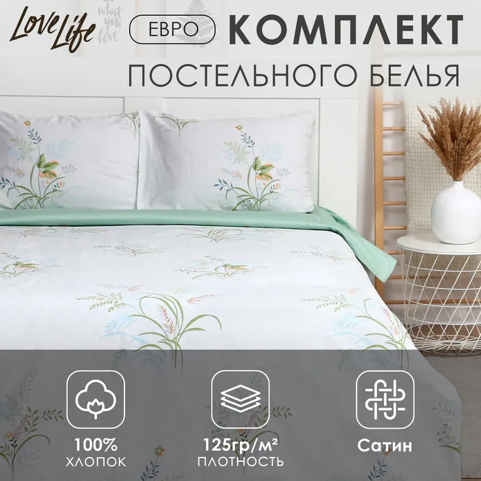 Постельное бельё LoveLife евро "Wildflowers" 200х217см, 225х240см, 50х70см-2шт, 100% хлопок, сатин, 125г/м²
