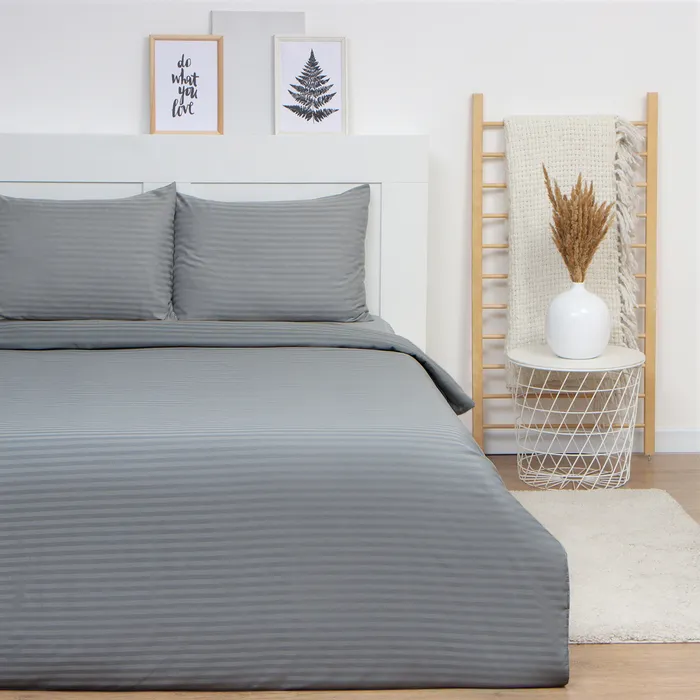 Комплект постельного белья LoveLife евро Gray line 200*217 см, 230*240 см, 50*70 см -2 шт, страйп-сатин, 100%п/э
