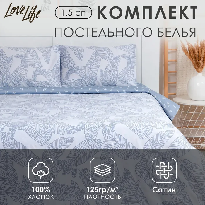 Постельное бельё LoveLife 1,5сп "Feathers" 143х215см, 150х225см, 50х70см-2шт,100% хлопок, сатин, 125г/м²