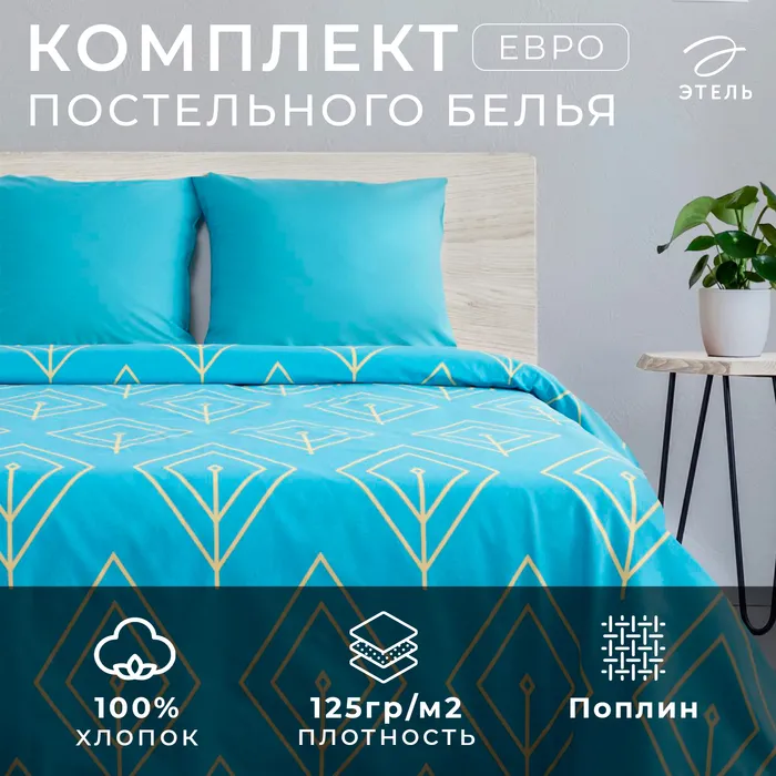 Постельное бельё Этель Евро «Тренд» 200х220 см, 220х240 см, 50х70-2шт,100%жатый хлопок,140гр/м2