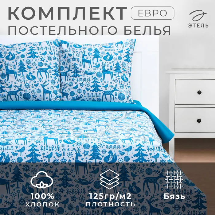 Постельное бельё "Этель" евро Winter forest 200х217 см,220х240 см,70х70 см -2 шт,бязь 125 г/м2
