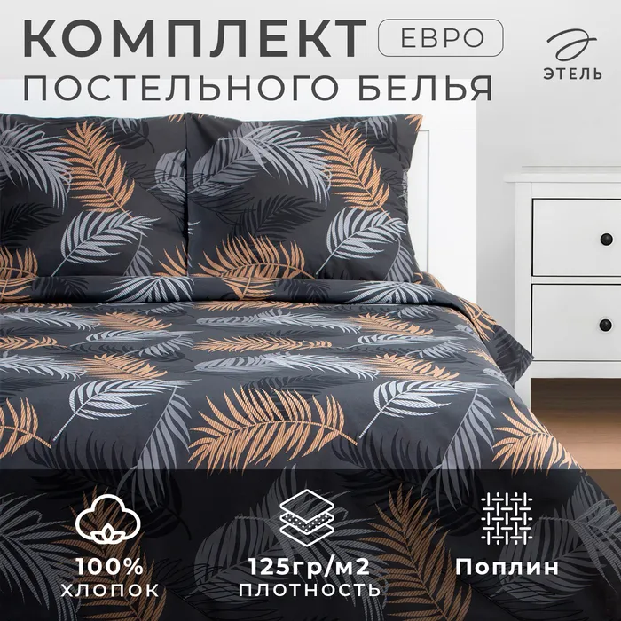 Постельное бельё Этель евро Areca palm, 200х217см ,220х240см, 50х70см-2 шт, поплин, 125 г/м2