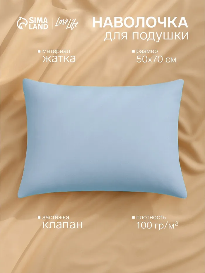 Наволочка LoveLife 50*70 см, цв.голубой, жатка, 100% п/э, 100гр/м2