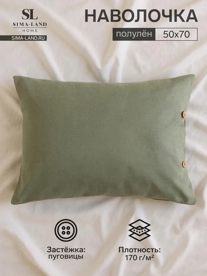 Наволочка SL Home Linen collection, 50×70 см, зелёная, лён 30%, хлопок 70%