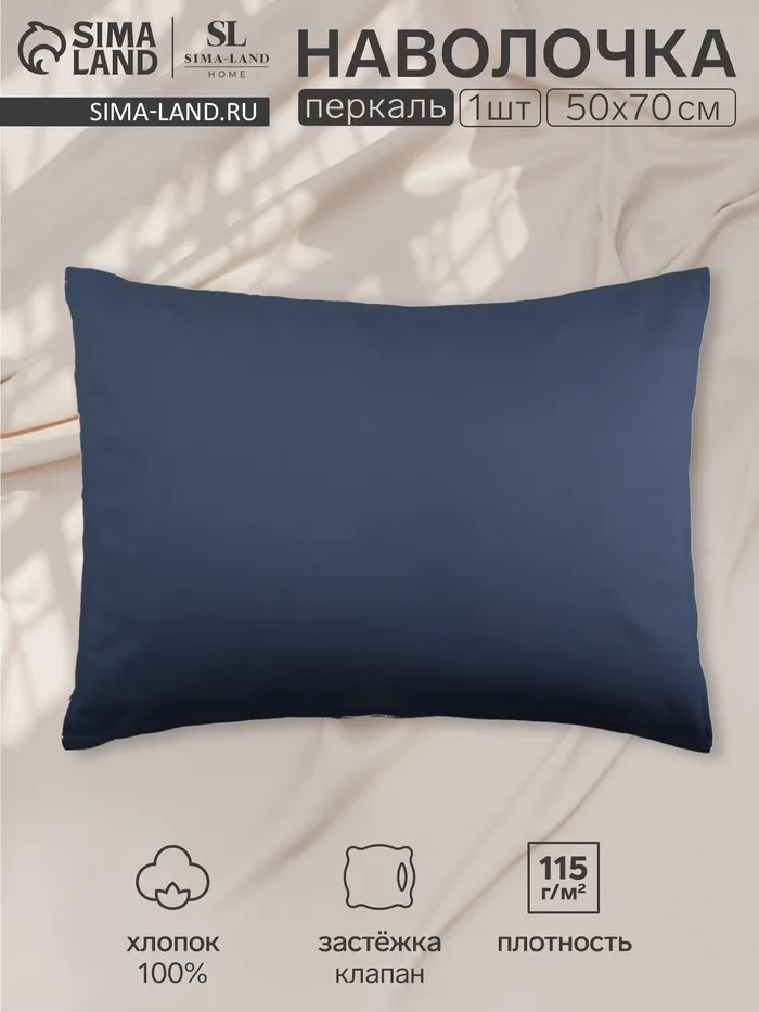 Наволочка Этель 50х70 см, цвет синий, мако-сатин, 114г/м2, 100% хлопок