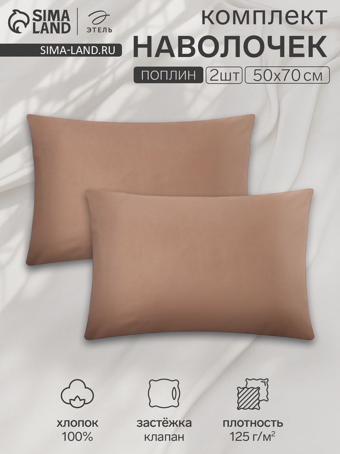 Комплект наволочек «Этель», 50×70 см, 2 шт., коричневый, поплин, хлопок 100%
