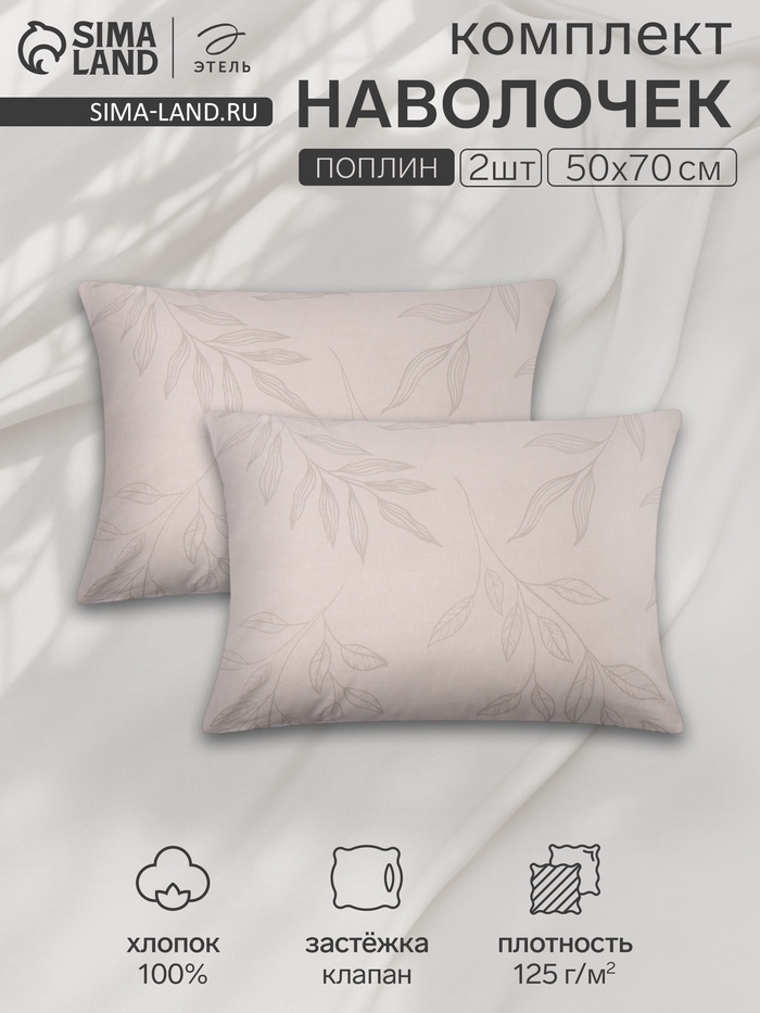 Комплект наволочек «Этель», 50×70 см, 2 шт., кремовый, поплин, хлопок 100%