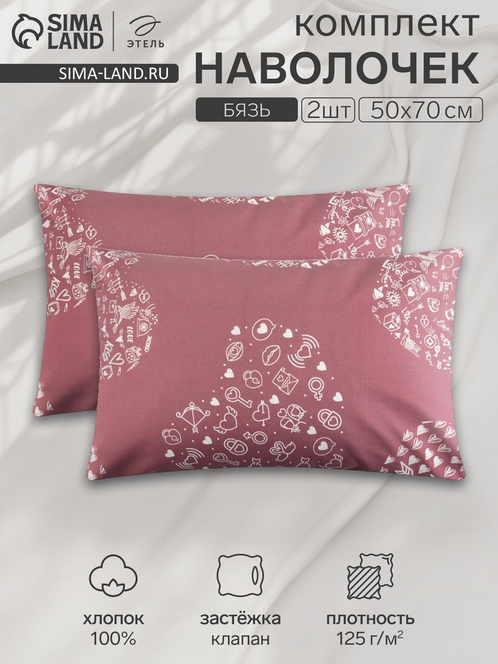 Комплект наволочек «Этель» Te amo (вид 2), 50×70 см, 2 шт., бязь, хлопок 100%