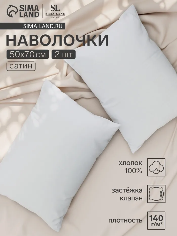 Наволочка 50×70 см, белая, 100% хлопок, бязь отбеленная, 120 г/м²