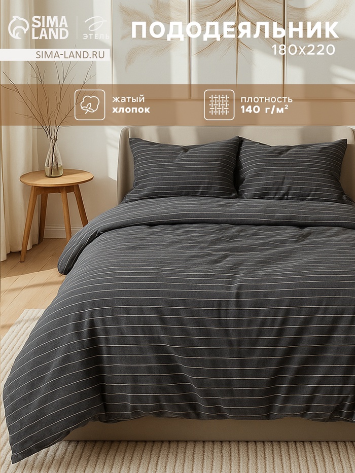 Пододеяльник 2-спальный «Этель» Quiet shade, 180×220 см, жатый хлопок