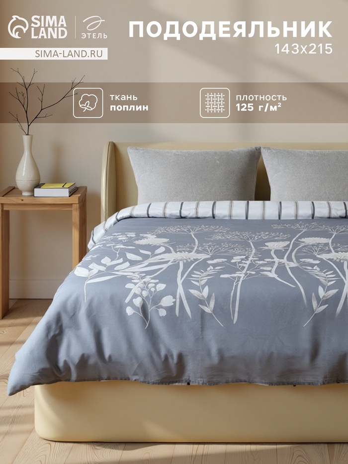 Пододеяльник Этель 143×215см цв. серый 100% хлопок поплин 125 г/м2