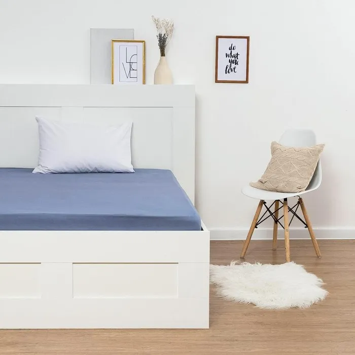 Простыня на резинке SL Home "Деним" 140*200+30 см, цв.синий, 100% жатый хлопок