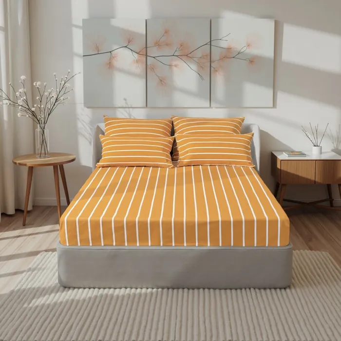 Простыня на резинке Этель 140*200*25 см " Mustard stripes", 100% хлопок, поплин, 125 гр/м2