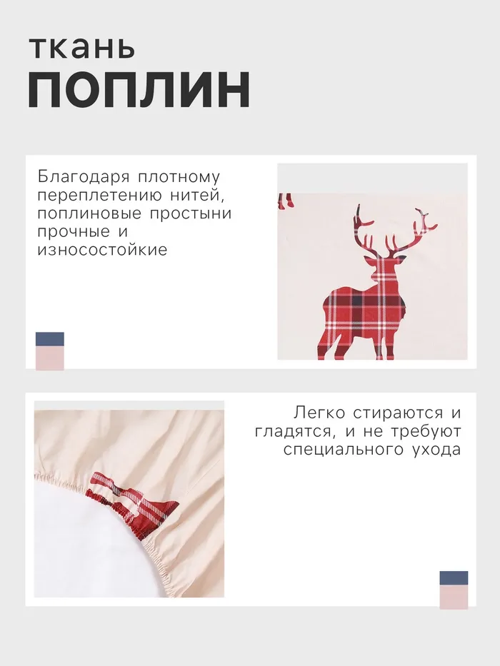 Простыня на резинке Этель Scottish deer 160х200х25, 100% хлопок, поплин 125г/м2