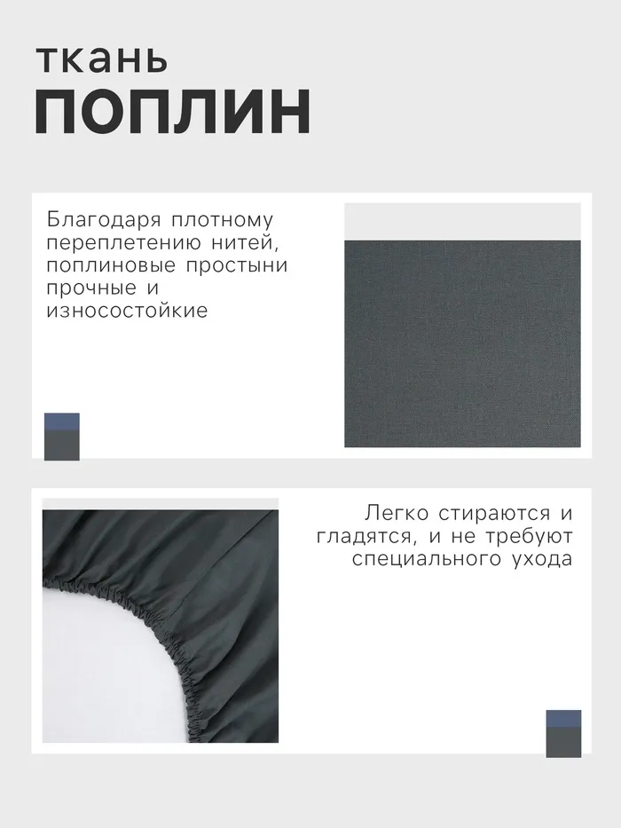 Простыня на резинке Этель 160*200*25 см, цв.серый, 100%хлопок, поплин, 125 гр/м2
