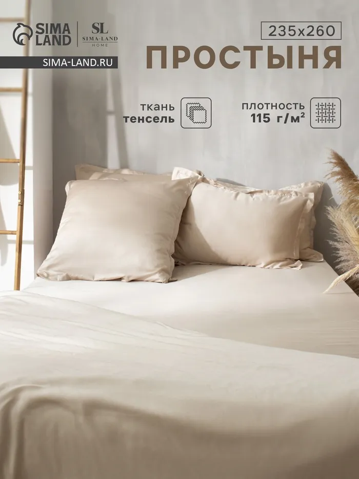 Простыня евро SL Home Tencel, 235×260 см, бежевая, тенсель