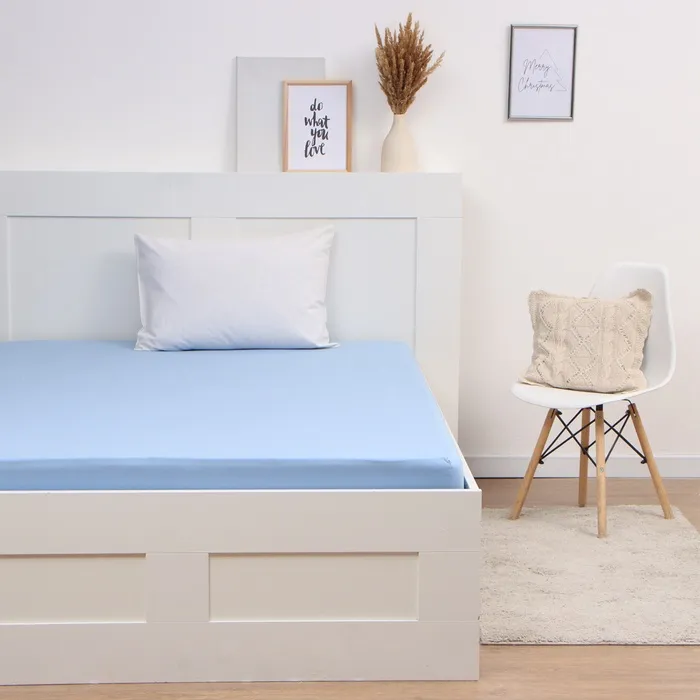 Трикотажная простыня на резинке 90х200х20см, голубой, кулирка 120г/м, хл100%