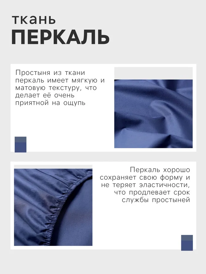 Простыня на резинке Этель 160*200*25 см, цв.синий, 100% хлопок, перкаль,114 г/м²