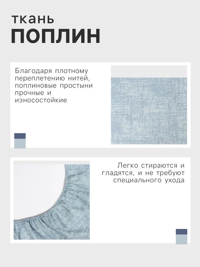 Простыня на резинке Этель 180×200×25 см, серая, 100% хлопок, поплин, 125 г/м²