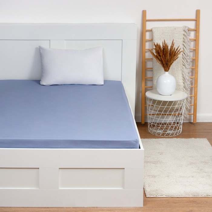 Простыня 2 спальная «Этель», 220×215 см, голубая, хлопок 100%, поплин