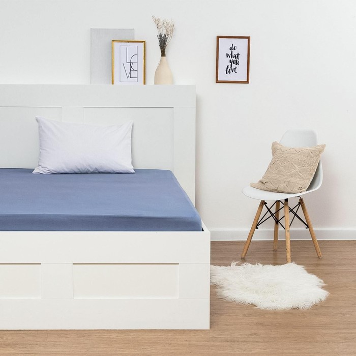 Простыня на резинке 1-спальная 120×200+25 см, голубая, кулирка
