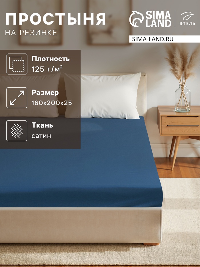 Простыня на резинке SL Home "Деним" 200*200+30 см, цв.синий, 100% жатый хлопок