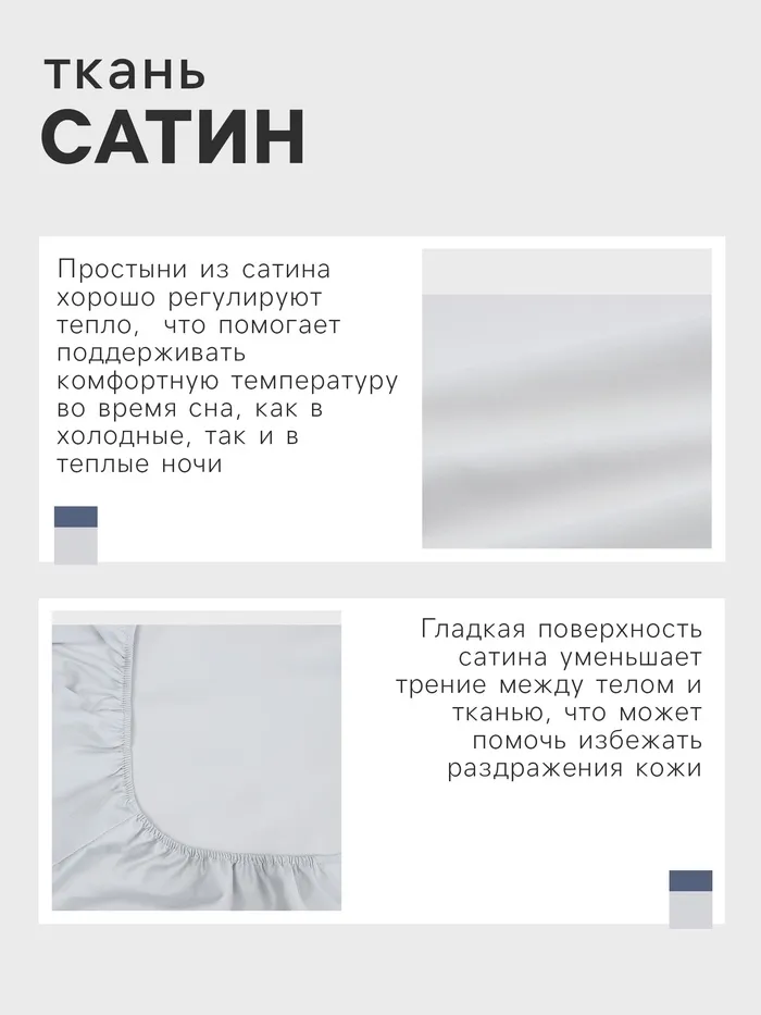 Простыня на резинке 220ТС Этель 180*200+30 см, цв.светло-серый, сатин, 100% хлопок