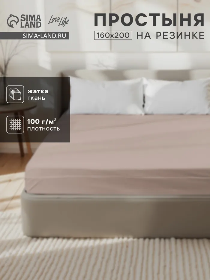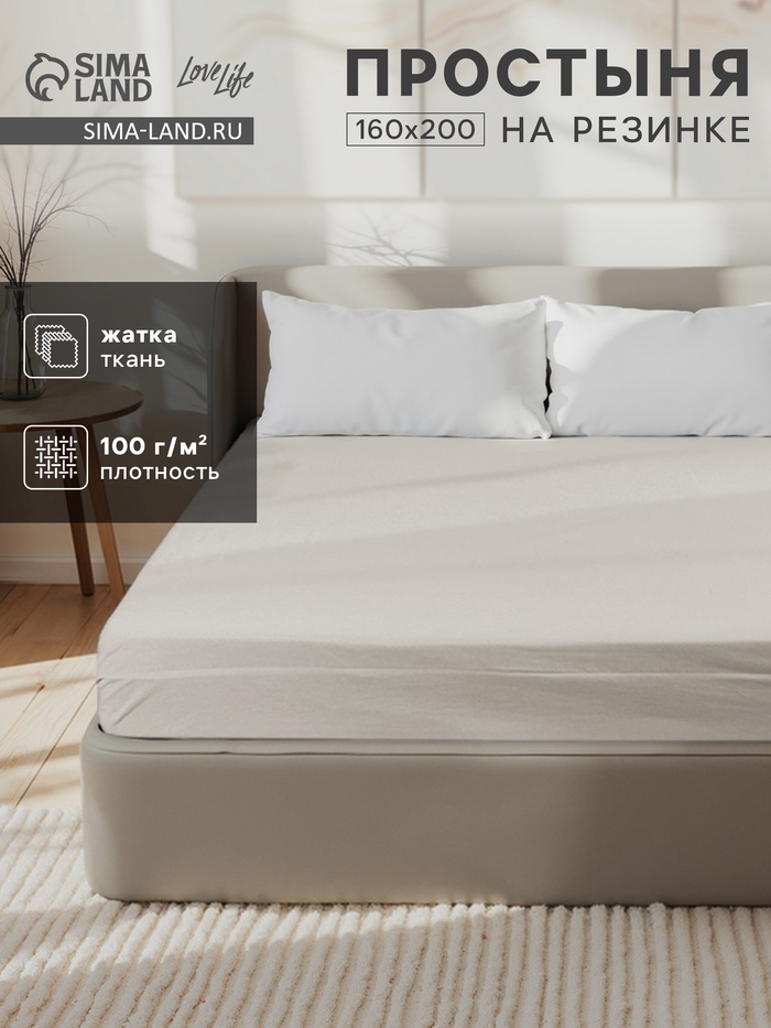 Простыня на резинке LoveLife 160*200*25 см, цв.бежевый, жатка, 100% п/э, 100гр/м2