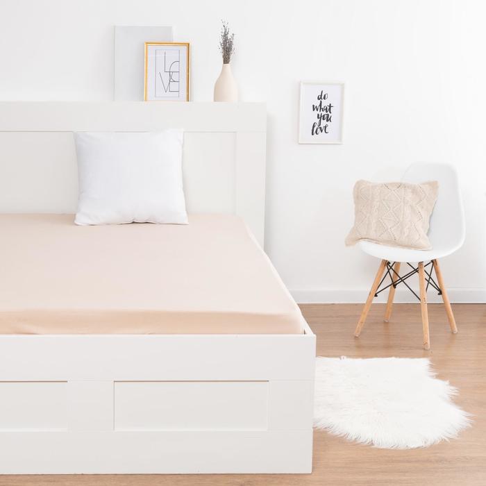 Простыня на резинке 2-спальная KUPU-KUPU, 160×200+20 см, бежевая, трикотаж