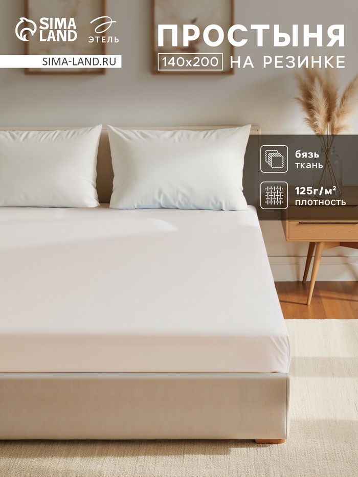 Простыня на резинке 1.5-спальная «Этель», 140×200+25 см, молочная, бязь